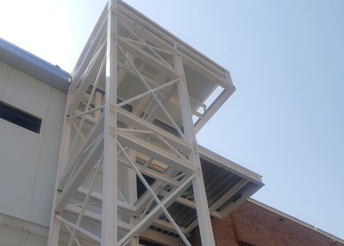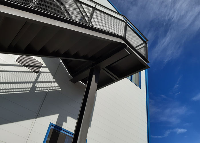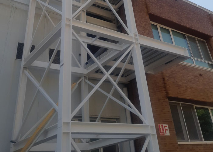 En el exterior se ha dispuesto una escalera y un ascensor que permiten el acceso a la entreplanta, mientras que en el interior se ha habilitado una pasarela de mantenimiento longitudinal para facilitar las labores de servicio y control.