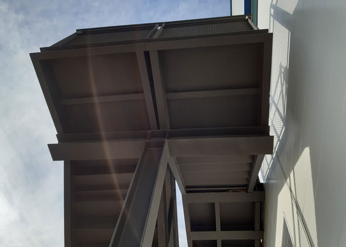 Asimismo, se han incorporado cerchas metálicas para el soporte del panel nervado de cubierta de 80 mm, así como la perfilería de fachada necesaria para la instalación de paneles planos de 60 mm.